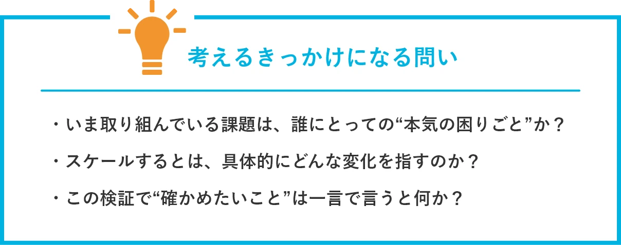 検証すべき前提とアウトプットを定め、最小限の打ち手をつくる